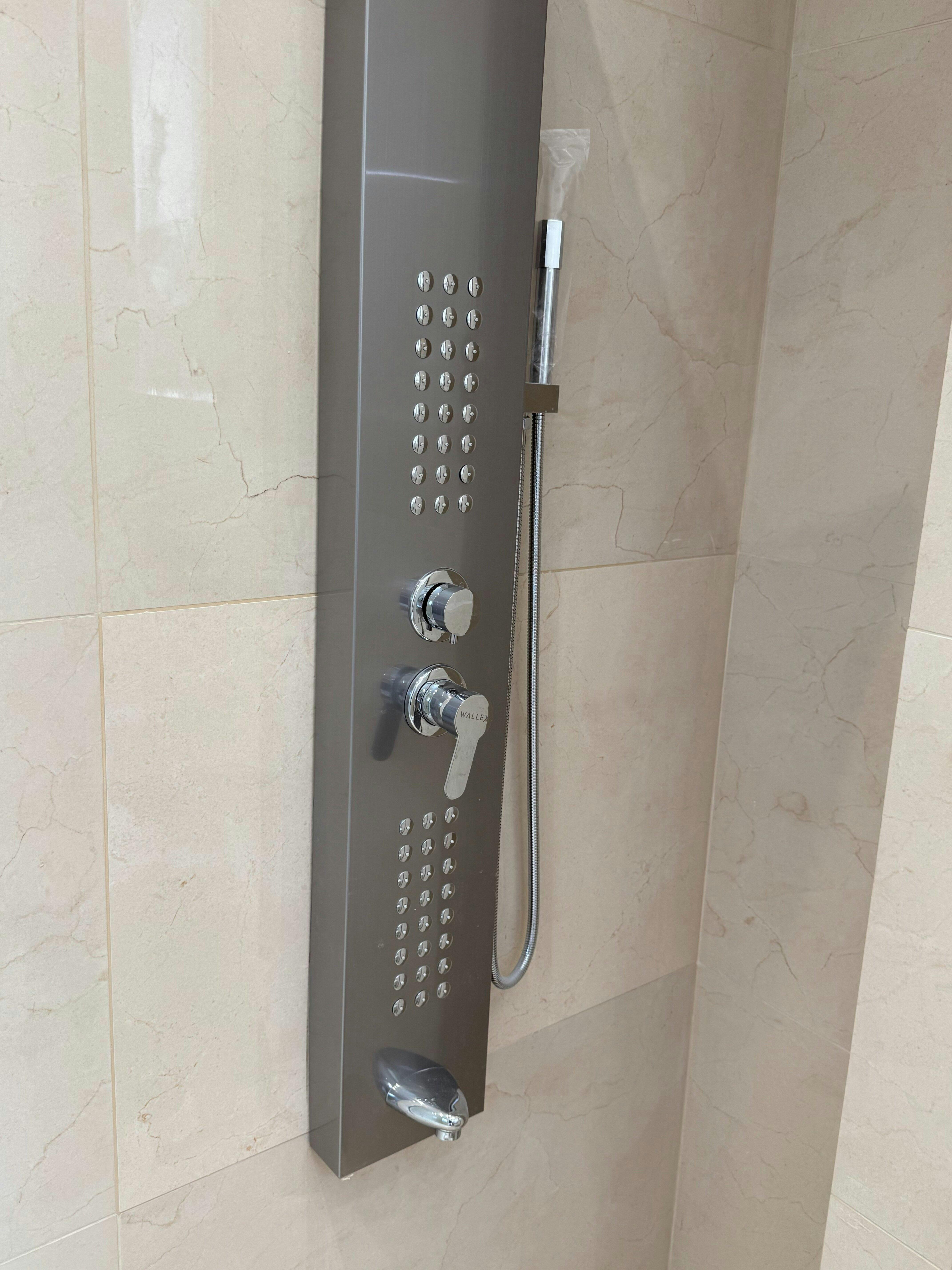Renew your bathroom with the Wallex AquaLux Pro® Silver Edition , a premium 150cm hydromassage column that combines modern design , top quality and a refreshing spa experience . Ideal for homes, hotels & Airbnb.